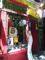 We wander around the Village looking for a store called The Little Lebowski, on Thompson Street. I love the Dude, and the movie is one of my favorites, so I have been wanting to go there for a while. The store is really small, selling mostly T-shirts, and it is cute, but we don’t end up buying anything.